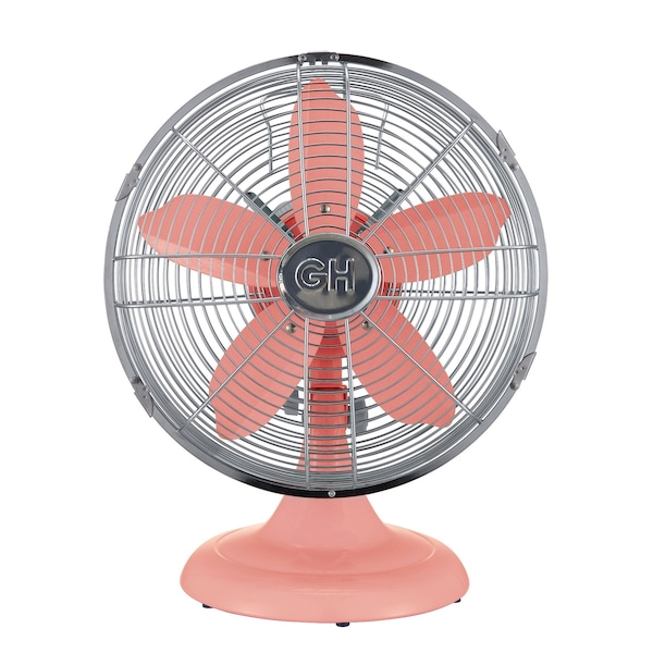 12in Retro Table Fan in Salmon finish