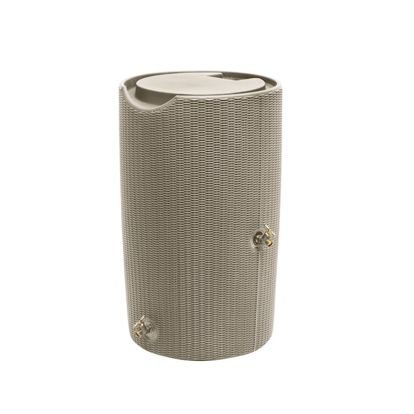 The Impressions Bali 50 Gallon Flat Top Rain Saver is perfect for virtually any home. Its appearance emulates the rotund woven texture of a wicker storage bin, and the flat top includes the Good Ideas original, integrated channel that automatically diverts overflow to the front of the barrel and keeps your foundation from flooding. The large opening which can be used for 2x3 or 3x4 downspouts is covered with a soft, fine mesh, plastic screen that keeps out heavy debris. Also included with the barrel are two sturdy metal spigots to install in the offset spigot locations.