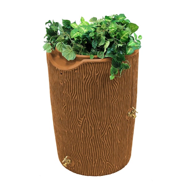 The Impressions Bark 50 Gallon Rain Saver is perfect for virtually any home. Its appearance emulates the rough texture of a large tree trunk, and with a deep welled top, you can plant an array of flowers or even a small herb or vegetable garden. The top also includes the Good Ideas original, integrated channel that automatically diverts overflow to the front of the barrel and keeps your foundation from flooding. The large opening can be used for 2x3 or 3x4 downspouts and is covered with a soft, fine mesh, plastic screen that keeps out heavy debris. Also included with the barrel are two sturdy metal spigots to install in the offset spigot locations.
