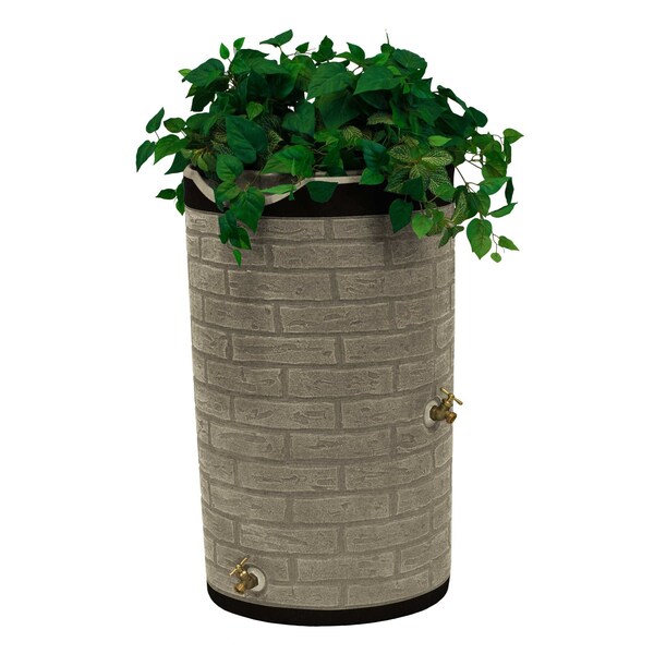 The Impressions Downton 50 Gallon Rain Saver with Darkened Ribs is one of the sturdiest and most eye-catching rain barrels on the market. Its appearance emulates the texture of European cobblestone, and with a deep welled top, you can plant an array of flowers or even a small herb or vegetable garden. The top also includes the Good Ideas original, integrated channel that automatically diverts overflow to the front of the barrel and keeps your foundation from flooding. The large opening can be used for 2x3 or 3x4 downspouts and is covered with a soft, fine mesh, plastic screen that keeps out heavy debris. Also included with the barrel are two sturdy metal spigots to install in the offset spigot locations.