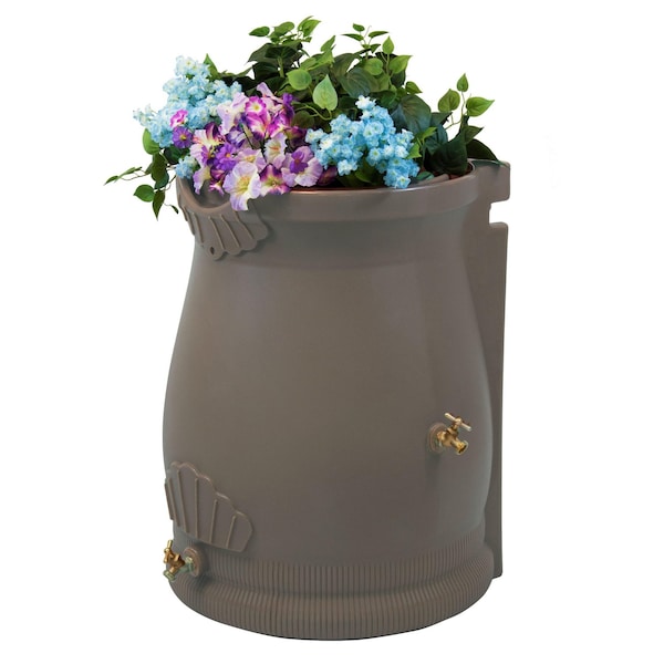 The Rain Wizard Urn 50 is both beautiful and cleverly designed. Constructed with thick and durable plastic resin, it will hold up to the harshest elements. With the appearance of a terra cotta urn, the rain barrel's graceful lines, curves, and trim make it a stylish accent piece for your home's exterior. The flat back design allows you to position the barrel close to walls or flat areas. The top is a self-draining planter and includes the Good Ideas original, integrated channel that diverts overflow to the front of the barrel to keep your foundation from flooding. The Rain Wizard Urn 50 comes with two metal spigots and locations: a centrally located bottom spigot to maximize water pressure and usage and a second upper side spigot for filling buckets and linking to other barrels. Like all Good Ideas rain barrels, this product is BPA-Free.