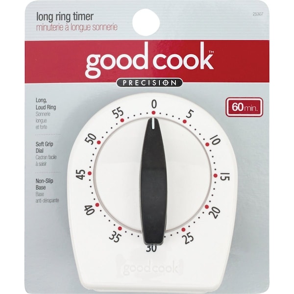 60-minute long ring timer has a soft dial grip and non-slip base. Large easy to read face.