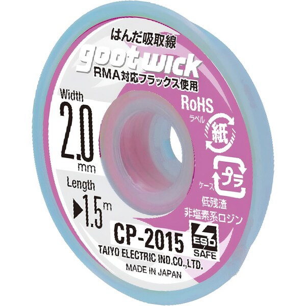 The CP-**15 Series, measuring about 5.0 ft 1.5 m in length, is expertly crafted for smaller-scale desoldering tasks where precision and efficiency are key. This series features an RMA base flux, specifically formulated to enhance performance in lead-free desoldering operations. The desoldering wire of this series stands out for its thinness and softness, with a flat braid design that ensures superior thermal transmission. This design not only accelerates the solder removal process but also provides remarkably better heat response compared to previous wicks. It's the optimal choice for professionals who require a reliable, high-performance desoldering solution for their intricate electronic work.