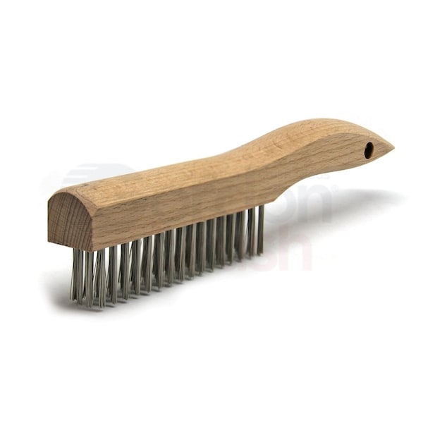 4 x 16 Row 0.012" Stainless Steel Wire and Wood Shoe Handle Scratch Brush