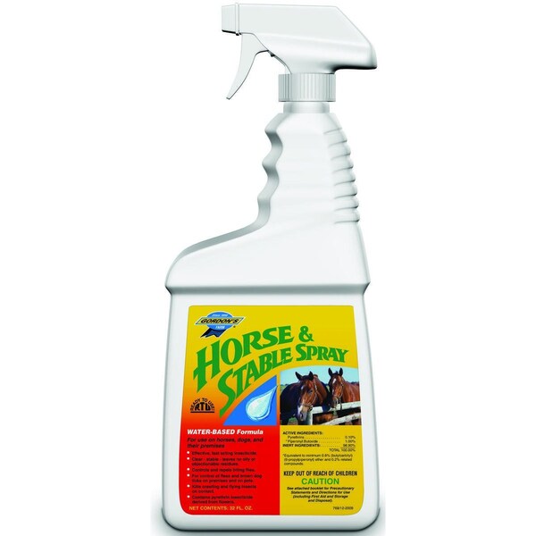 SPRAY HORSE/STABLE MULTIPUR QT Specifications: Compositions: Piperonyl Butoxide Pyrethrin Water-based formula leaves no oily residue. Effective and fast acting for control of biting flies on horses and in stables. Excellent for control of fleas and ticks on dogs and cats and in kennels as well as for control of mosquitoes and other insects both outdoors including campsites and indoors in the home, dairy buildings and livestock buildings.