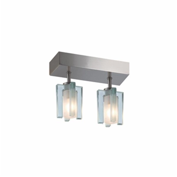 Features -The AKINA features a charming 4-point glass element set perpendicularly over a frosted cylindrical core. -The collection comprises of Ceiling Mounts from 1-Light through 4-Light Single and Multiple Pendants as well as 1-Light and 2-Light Wall Sconces. -2-Light Ceiling Mount AKINA-Series 301. -With built in electronic transformer. -Dimension - 9.5 L x 2.63 W x 6.13 H in. -Finish - Satin Nickel -Shade Finish - Clear-Frosted -Collection - AKINA -Bulb Type - 235W 12V JC Bi-Pin -Bulb Included - Yes -Material - Metal /Glass