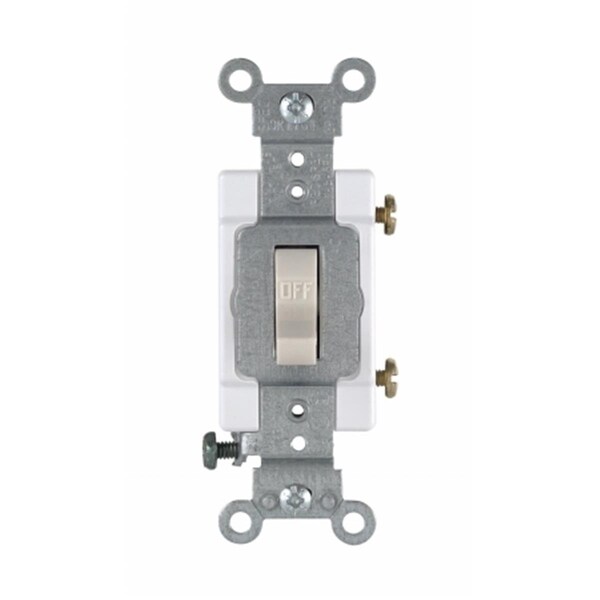 The Leviton 3-way toggle switch is a time tested classic. Designed for residential use it's constructed of impact-resistant thermoplastic and its large head hardened triple-drive screws allow for easy installation. Compatible with a wide range of our Leviton wall plates. Features -Faster installation with combination of side wiring and Quickwire push-in wiring -Terminal screws accept up to No. 12 AWG copper or copper-clad wire -Quickwire push-in terminals accept No. 14 AWG solid copper wire only -Large triple combination screws Robertson/Phillips/Slotted for fast wiring -Impact-resistant durable thermoplastic toggle and frame -Rated for 120V - 15 amps -Color - White