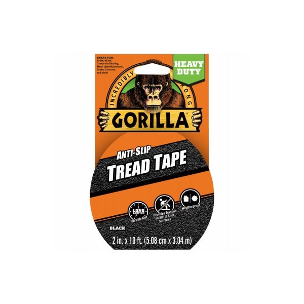 10 ft Gorilla AntiSlip Tread Tape is designed to help prevent slips and falls by providing durable traction to wet, slick or high traffic areas The multiple layers of protective coating ensure a heavy duty long lasting, durable grit for both indoors and out Gorilla AntiSlip Tread Tape is perfect for ladders, steps, ramps, boats, RVs, decks, and more