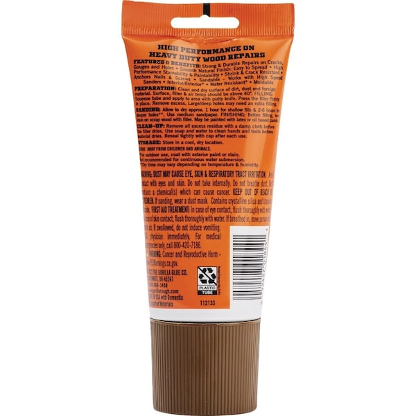 All purpose wood filler is the go-to product for strong durable repairs on cracks gouges and holes. The unique formula is easy to spread allowing for a smooth natural finish. Its high performance stainability paintability and sandability provides you with a professional looking finished project. Shrink and crack resistant. Anchors nails and screws. Sandable works with high speed sanders. Moldable and water resistant. Ideal for interior and exterior use. For outdoor use coat with exterior paint. Not recommended for continuous water submersion.