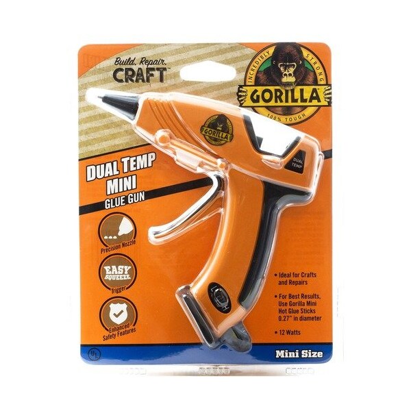 The Gorilla Glue Company Glue Gun,Mini,Dual Temp,12-Watt,w/Rubber Handle, OE/BK, HOT GLUE GUN,MINI