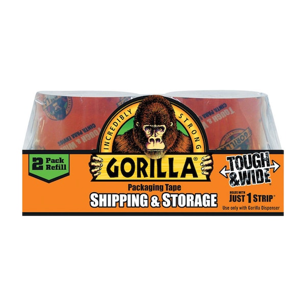 Gorilla Packaging Tape Tough & Wide provides the ultimate solution for moving, shipping and storing. This adhesive tape offers heavy duty strength and durability. The crystal clear packing tape is moisture and temperature resistant, and at nearly 3 inches wide you can seal boxes with just 1 strip. Its smooth, quiet dispensing secures packages quick and easy with just one Tough & Wide strip. With its wider tape construction, easy-to-grip dispenser, and problem-free tear, this tough tape is simpler to use than other packaging tapes. Plus, its easy-to-refill dispenser lets you get the job done in no time.