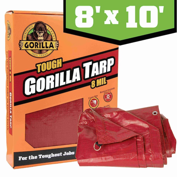 Tarp, 8 ft x 10 ft, 8 mil, Red, PE, Weather Resistant with UV Coating