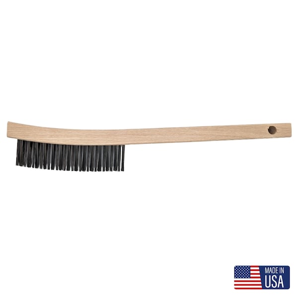 This Large Scratch Brush with a hardwood block handle and black tempered wire in a 3-row configuration is designed for heavy-duty surface cleaning and preparation in industrial, welding, metalworking, and maintenance environments. The wide, rectangular wood handle provides a firm, comfortable grip for extended use, allowing even pressure and efficient coverage over flat or contoured surfaces. Ideal for removing rust, paint, scale, corrosion, and slag from metal surfaces, this wire brush is a go-to tool for prep work before welding, painting, or coating. The densely packed black tempered steel wire is heat-treated for added strength and stiffness, delivering aggressive abrasion and effective cleaning on ferrous metals and other durable materials. The 3-row design offers a balanced combination of coverage and control, making it suitable for cleaning larger areas without sacrificing precision. Each wire tuft is securely anchored in the wood block to minimize shedding and maintain performance through repeated use. Black tempered wire outperforms softer filaments like brass or stainless steel in heavy-duty applications, cutting through stubborn buildup like carbon deposits and oxidation. The solid hardwood handle resists splitting and wear, even in tough shop or job site conditions, and provides a natural, non-slip grip that wont fatigue the hand during extended scrubbing. This scratch brush is ideal for use in fabrication shops, welding operations, repair and maintenance departments, and general-purpose cleaning. Its commonly used to prepare surfaces for adhesives, clean parts for inspection, or scrub off residue in post-processing steps. Whether used in MRO kits, fabrication stations, or field service tools, this 3-row tempered wire brush offers reliable performance and long-lasting construction. This brush reflects a commitment to quality, durability, and craftsmanship that professionals can depend on every day.