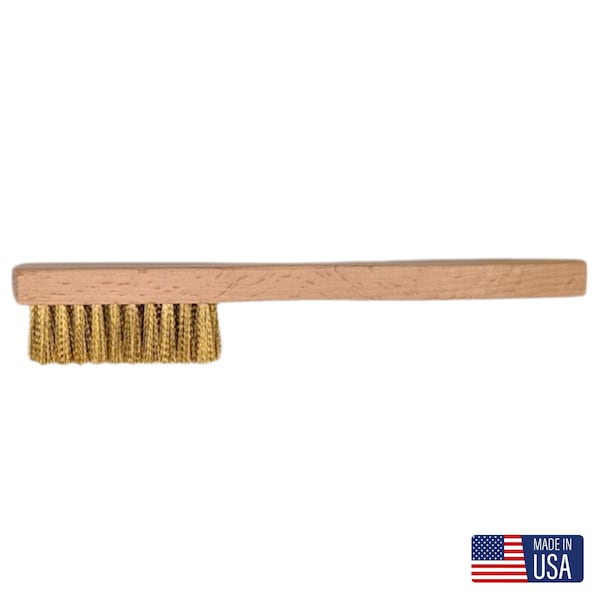This Typewriter Utility Brush features a slim hardwood handle and soft brass wire filaments for gentle yet effective cleaning of small parts, typebars, keyboards, lab instruments, and delicate mechanical components. The narrow design allows for detailed work in tight areas where precision is key. Brass wire is non-sparking and corrosion-resistant, making it safe for use on non-ferrous metals and sensitive surfaces such as aluminum, copper, and electronics. Its also soft enough to avoid scratching finished surfaces or leaving residue, making it an ideal tool for vintage equipment maintenance, office machines, and fine electronics. The bristles are securely anchored for long-lasting use, while the comfortable wood handle offers excellent control for careful cleaning. Often used by technicians, jewelers, hobbyists, and antique restorers, this utility brush balances precision and performance. Its trusted by professionals who require non-marring, detail-focused tools for restoration, electronics, and mechanical cleaning tasks.