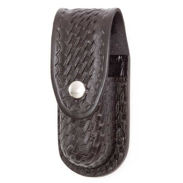 Aerosol Pouch, Aerosol Pouch, Color Black, Material Leather, Fits 2 1/4 in Belt, For Use With 2 1/4 in Belt, Features Handsome Molded Style, Sizes Available for 2 oz, 3 oz, 4 oz Standard Aerosol Dispenser, Holds Aerosol, Finish Basket Weave, Closure Style Snap, For Belt Width 2 1/4 in, OC/Aerosol Pouch