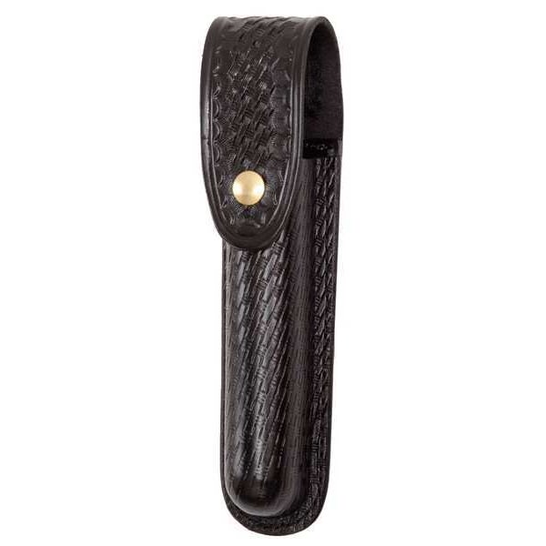 Flashlight Pouch, Flashlight Pouch, Color Black, Material Leather, Fits 2 1/4 in Belt, For Use With 2 1/4 in Belt, Features Holds Scorpion or Sure Fire 6P Flashlight, Holds Baton, Flashlight, Finish Basket Weave, Closure Style Snap, For Belt Width 2 1/4 in, Flashlight Pouch