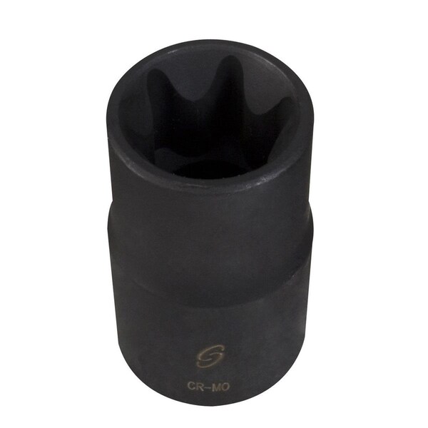 Features -CR-MO alloy steel for long life -Heavy duty blow molded case, 1/2 in. drive -E7 external star impact socket