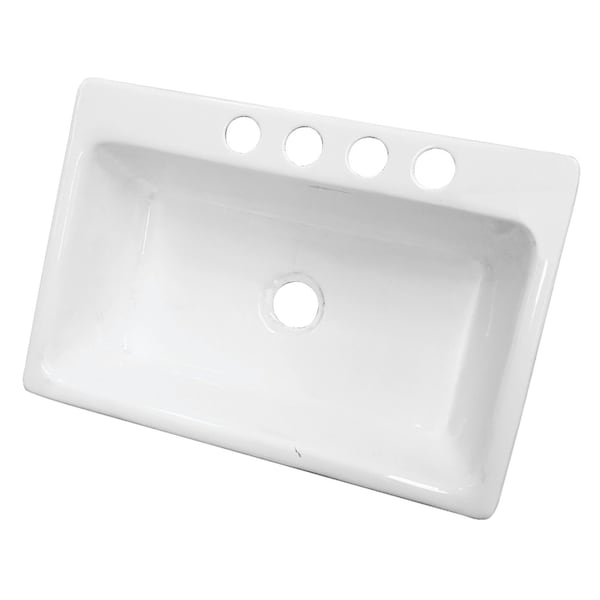Fabricated from cast iron material, Undermount installation with 4 pre-drilled faucet holes, Overall dimensions: (L)33" x (W)22" x (H)8-5/8", Includes mounting hardware, Easy-to-clean, Designed for long-lasting durability