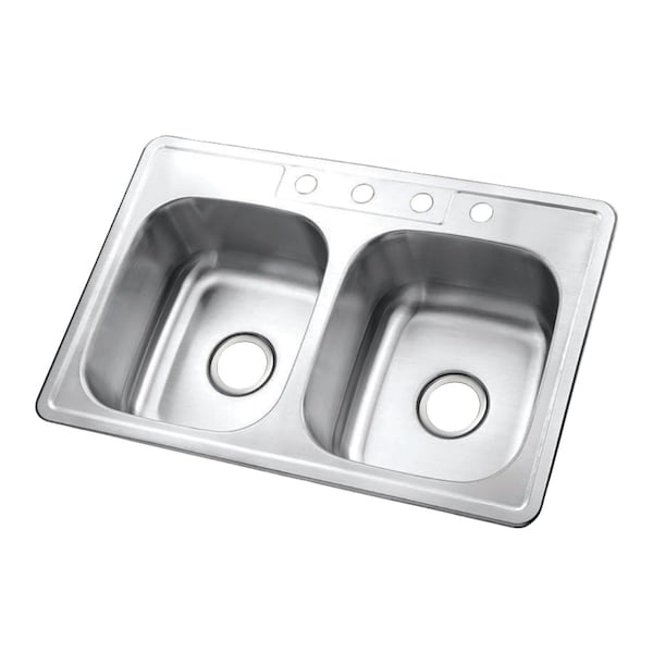 Fabricated from 304 Grade Stainless Steel, Bowl Dimensions: Left Bowl- (L)14-1/2" x (W)16-1/4", Right Bowl- (L)14-1/2" x (W)16-1/4", 22 Gauge Stainless Steel, Underside has Sound Absorbing Pads Applied to Dampen Sound, 4 Pre-drilled Faucet Hole, Designed for Long-Lasting Durability, Easy-to-Clean