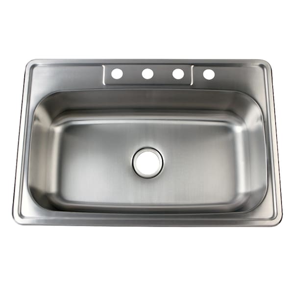 Fabricated from 304 grade stainless steel, Bowl dimensions : (L)29-1/2" x (W)15-15/16", 18 Gauge Stainless Steel, Underside has sound absorbing pads applied to dampen sound, 4 Pre-drilled faucet hole, Designed for long-lasting durability, Easy-to-clean