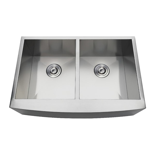 Exquisitely styled for your taste, this sink will enhance your kitchen living space. Farmhouse sinks have an apron front that causes the sink to be the centerpiece of kitchen design. This unique feature prevents water spillage on cabinetry while adding aesthetic appeal. The Uptowne Stainless Steel Double Bowl Farmhouse Kitchen Sink in particular, is constructed from high quality 304 grade rust-resistant stainless steel. The brushed finish is also resistant to scratches, and with the sink's sound dampening technology, sound and vibrations are reduced. Perfect for organizing, separate fruits and vegetables that need washing from dirty dishes, or allow dishes to dry on one half and be washed on the other with the provided double bowl. Allow this farmhouse sinks to impeccably complete your styled kitchen.