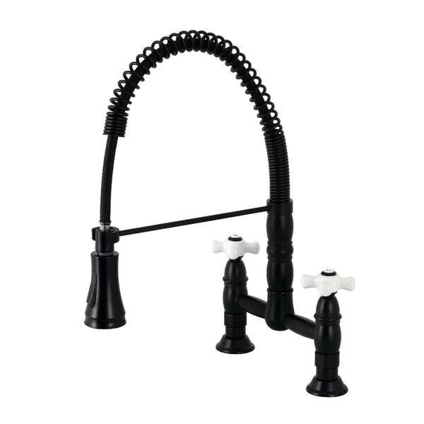 GS1270PX Two-Handle Deck-Mount Pull-Down Sprayer Kitchen Faucet, Black