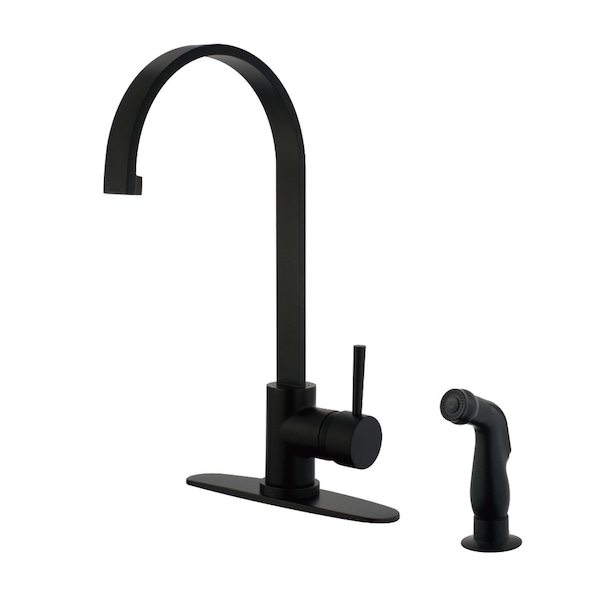 This faucet boasts bold, sleek design with its cylindrical styling. Easily adaptable to any kitchen, the Concord single-handle kitchen faucet is prized for its easy-to-use single handle. This makes it the perfect fixture for multitasking as you can adjust temperature and volume in one swipe. Enjoy the strong and durable brass material and matte black finish that will last for years to come. The included matching finish side-sprayer also adds convenience in cleaning hard-to-reach areas.