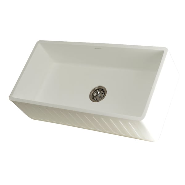 Solid Surface Stone Apron Front Farmhouse Sgl Bowl Kitchen Sink, White