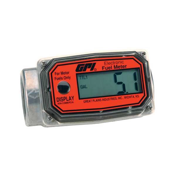 Electronic Flowmeter, Product Type Fuel Meter, Flowmeter Type Turbine, Accuracy +/-2.5 Percent, Connection Size 1 in, Connection Type FNPT, Compatible Flow Material B20, Diesel, E15, Gasoline, Kerosene, Media Temperature - Maximum 130 Degrees F, Media Temperature - Minimum 14 Degrees F, Viscosity - Maximum 40 SUS, Housing Material Aluminum, Rotor Material Nylon, O-Ring Material 316 Stainless Steel, Shaft Material Tungsten Carbide