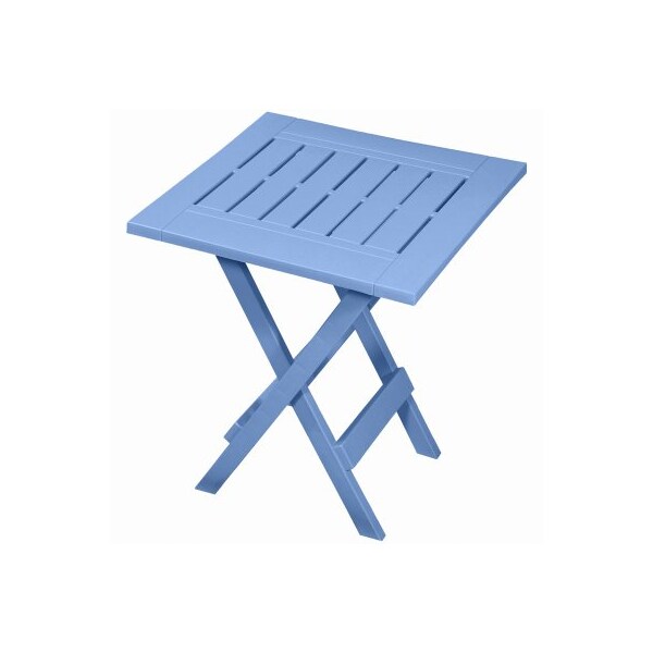 Gracious Living, folding table, Blue Heaven Coordinates with the Adirondack collection Contemporary slat design Folds for convenient storage Made from easy care weather resistant resin that is fade resistant Boxed in a PDQ