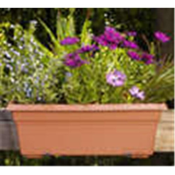Made of lightweight durable fade-resistant plastic coded for recycling.Lightweight durable fade-resistant plastic.Countryside styling with matte finish satin band and molded-in feet.Removable drainage plugs for better plant growth.Easy-to-install brackets available.Dimensions (L x W x H):36 x 7.5 x 6.56