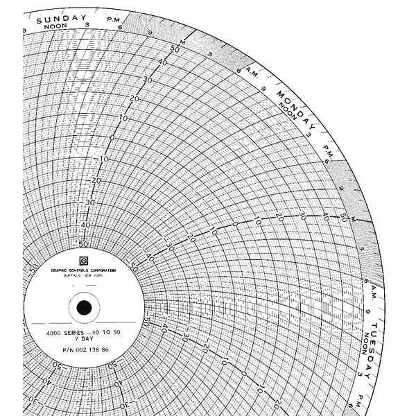 Circular Paper Chart, Compatible with Manufacturer Model Number MRC 7000, Compatible with Series Universal, Lowest Generic Number Recorded -50, Minimum DC Current Measurement Not Applicable, Product Type Circular Paper Chart, Strip Chart Length Not Applicable, Grid Color Black, Increment of Variation 10, Strip Chart Width Not Applicable, Highest Generic Number Recorded 50, Maximum AC Current Measurement Not Applicable, Maximum AC Voltage Measured Not Applicable
