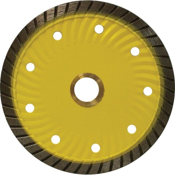 Wave style core enhances the cutting speed, continuous rim turbo style for a smooth cut in wet or dry cuts with an electric circular saw or right-angle grinder. Includes 5/8 in bushing. Fast cutting.