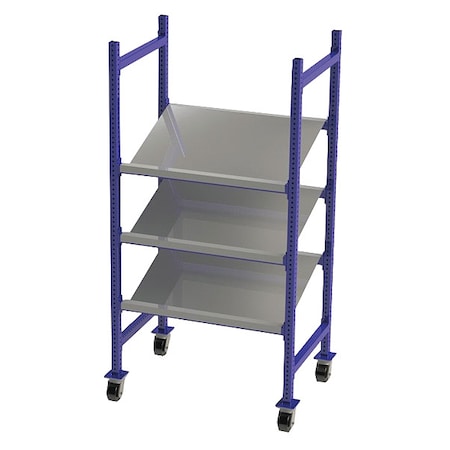 Mobile Gravity Flow Rack, 28 in D, 60 in W, 3 Shelves, Blue