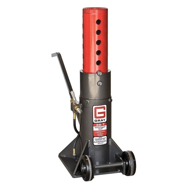 Support Stand, Duty Rating Heavy Duty, Lifting Actuator Pneumatic, Load Capacity per Pair 35 ton, Minimum Height 20 1/4 in, Maximum Extended Height 32 in, Base Material Steel, Saddle Shape Round Textured, Saddle Length 5 in, Saddle Width 5 in, Saddle Diameter Not Applicable, Base Shape Square, Locking Type Pin, Standards ASME PASE 2014, Base Length 13 in, Base Width 13 in, Column Material Steel, Height Spacing Increments 1 in, Individual Stand Load Capacity 35 ton, Locking Mechanism Pin, 1 Pair