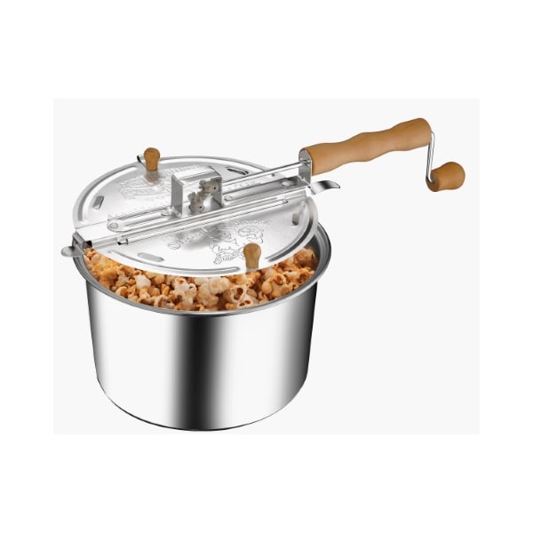 The 6.5-quart Stovetop Spinner Popper from Great Northern Popcorn can make delicious movie theater style popcorn in minutes. Just add a 4-ounce Great Northern all-in-one portion pack or your own popcorn to the pan and turn the knob at the end of the real wood handle. The unique design of this stovetop popper ensures the kernels are constantly moving, allowing the moisture to escape, and delivering fresh and crunchy popcorn in no time!