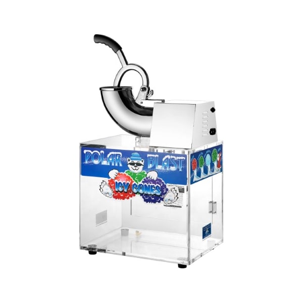 When the weather starts getting warm, you know there is only one thing that will cool you down fast enough... Snow Cones! Great Northern is proud to be able to provide you with the Polar Blast. This acrylic industry leading commercial quality snow cone machine, with it's 1/4 HP motor operating at 1420 RPM's and capable of grinding out an amazing 500 lbs of ice an hour, will cool down a party on the hottest of days and the only worry you will have is having enough ice. There is not another unit available at this price that will do as much as this machine, or as well. The Polar Blast snow cone ice machine features acrylic wall panels that allow you to see the ice inside from all angles, yet is far more sturdy that the aluminum or steel and Plexiglas models. The stainless steel heavy duty hopper eats ice like candy with it's 1420RPM 1/4 horse power motor, and the safety interlock, not included on comparable machines, ensures that you will have hour after hour of safe operation. These are perfect for schools, businesses, day care centers, varsity/PTA clubs, carnivals and more.