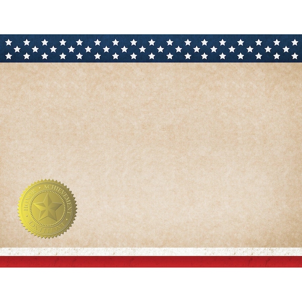 Certificate Patriotic,8.5 In.x11 In.,PK25, Package Quantity 25