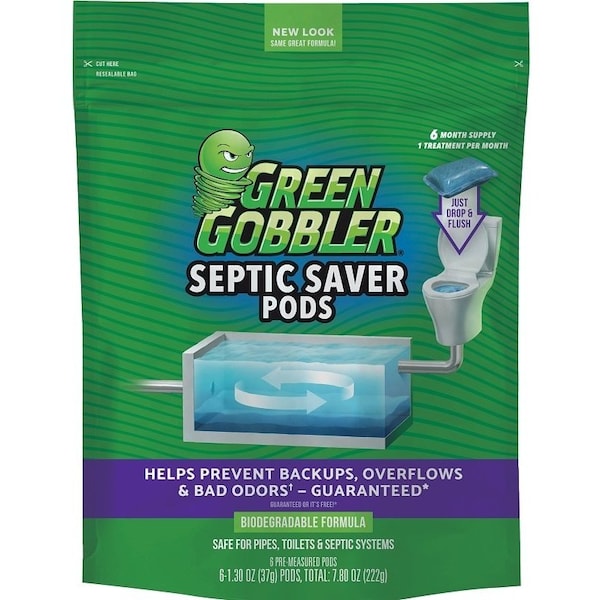 It's easy to maintain a healthy septic system with Green Gobbler Septic Saver Pods Flushing one Pod a month can help you avoid significant sewage issues Septic Saver Pods contain bacteria that produce enzymes to help break down organic materials Pods can also help your septic system avoid the harmful effects caused by bleach, detergents, and other chemical drain openers This sixmonth supply of premeasured Septic Saver Pods will help you avoid headaches and costly repairs