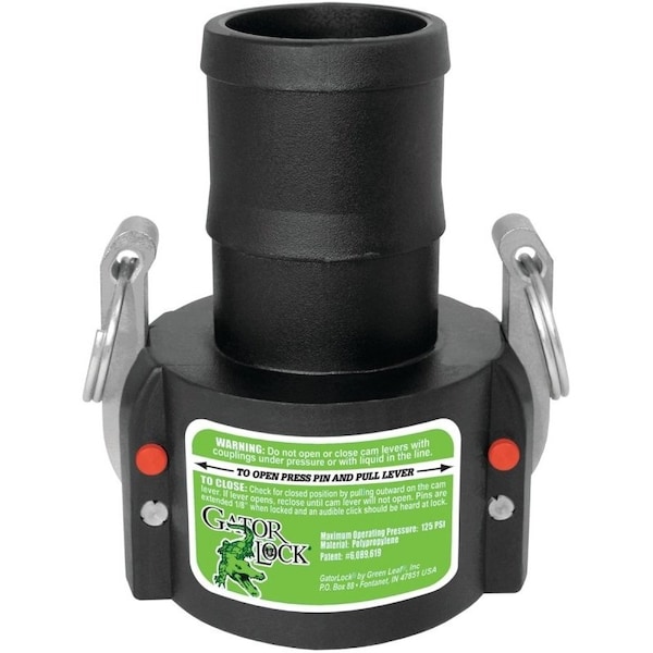 Cam Lever Coupling, 2 in, Female x Hose Barb, Glass Filled Polypropylene