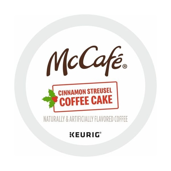 Discover an abundance of freshly baked flavor in every delicious sip of McCafe's Cinnamon Streusel Coffee Cake. Warming notes of cinnamon and delightful, brown sugar finish in this flavored coffee make this limited-edition blend the perfect sweet reward for any winter's day. Light-roast, caffeinated coffee comes in airtight, recyclable K-Cups for single-cup brewing systems. K-Cups are easy to use. Simply shake and insert into your Keurig coffee brewer for a delicious cup of coffee.