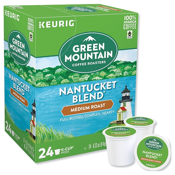 Coffee, Net Weight 7.92 oz, Beverage Package Style Pod, Coffee Roast/Tea Type Medium, Package Weight 0.33 oz, Sub-Brand Green Mountain Coffee(R), Beverage Flavor Nantucket Blend, Product Type Coffee, Caffeine Type Caffeinated, Beverage Format Ground, Package Quantity 24