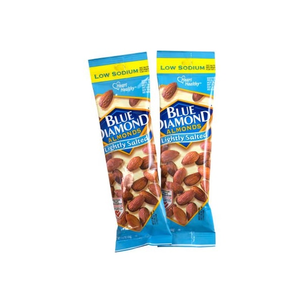 Almonds are a great source of protein, and a healthier choice than most snacks. Now, with low sodium, blue diamonds low sodium lightly salted almonds are an even better snack to reach for when your midday hunger sets in. Fill your office vending machine, and break room, with these nutritious and delicious nuts. Plus, with twelve individual snack portions in each blue diamond low sodium lightly salted almonds, you won't need to worry about running out.