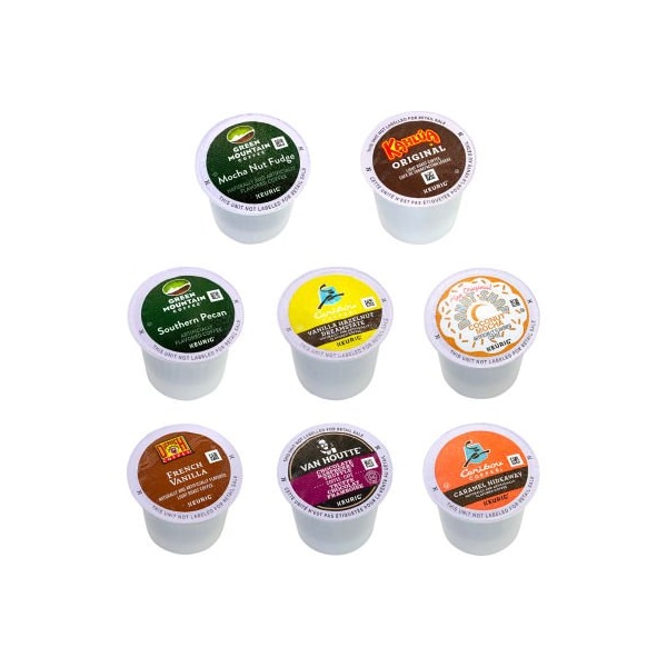 Not everyone likes the same coffee, and this favorite flavors k-cup assortment box is a fun way to find your favorites and have something for every taste. Particularly useful for serving guests, in an office setting, and even as a holiday gift, this kcup sampler comes with flavors like green mountain, kahlua, vanhoutte, donut shop, and more. Great for the office break room keurig machine, or for the kitchen counter at home, this favorite flavors k-cup assortment is a must have for any coffee-lover.