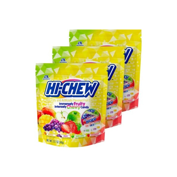 Unwrap the delicious fruit flavors of these hi-chew fruit chews and enjoy the fruit bursts of strawberry, green apple, mango, and grape flavors. This japanese candy is mouthwateringly sweet and is individually wrapped for candy jars and bowls. This 3-pack is a must have for any gummy or chewy candy-lover and the assorted flavors makes it easy to share with family, friends, or coworkers. Savor the flavor of fun in these hi-chew fruit chews pouches.