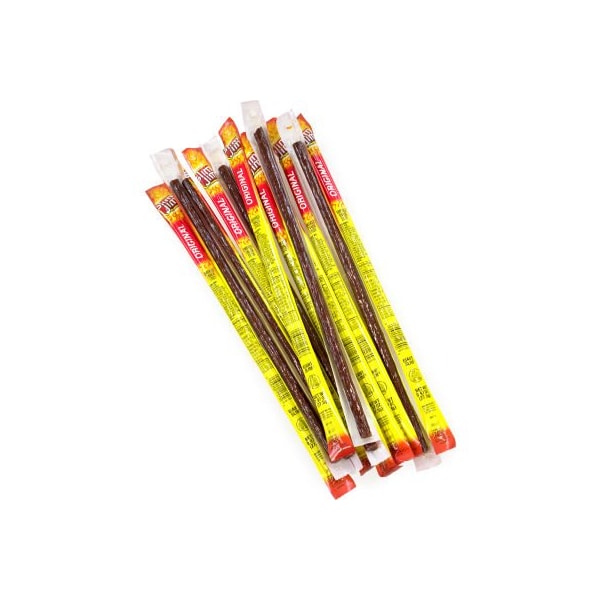Don t just reach for any snack, snap in to a slim jim original smoked snack stick. Each snack stick is bursting with spices and pure beef flavor. Plus, indulge guilt-free, with only 140 calories per serving size, and packed with protein, this snack is a great alternative to a bag of chips or pretzels. With 24 individually wrapped sticks, this bulk box is perfect for stocking the pantry with slim jim original smoked snack sticks.