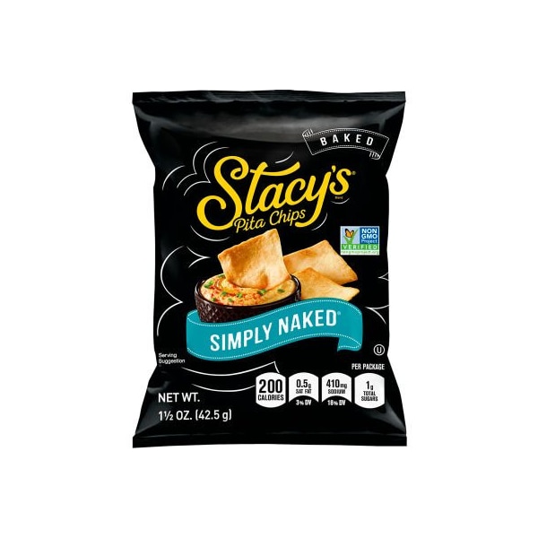 Enjoy the delicious crunch of stacy's pita chips. Stacy's pita chips simply naked are non-gmo, and have no artificial color or flavor. These pita chips are great for snacking on at the office, or if you're on-the-go. Bite into the crisp crunch of real pita bread, twice baked with natural pita flavor. are a must have for any office break room.