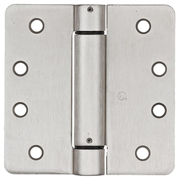 Features -Satin Nickel Spring Adjustable Door Hinge. -Manufactured With Cold Rolled Steel. -Closing Speed Is Adjustable. -Fits Standard Hinge Cutout. -Tension Is Adjustable. -1/4 in. Radius Round Corners. -Hinge Is UL Approved For Fire Doors. -Size - 4 in. -Dimension - 0.88 x 3.75 x 6.63 in. -Item Weight - 0.85 lbs.