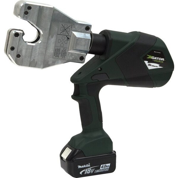 Cordless Crimping Tool, Battery Platform Makita 18V LXT, Maximum Copper Lug Crimping Capacity 500 kcmil, Minimum Copper Lug Crimping Capacity 6 AWG, Maximum Aluminum Lug Crimping Capacity 400 kcmil, Minimum Aluminum Lug Crimping Capacity 6 AWG, Crimping Force 6 ton, Compatible Die Type Not Applicable, Head Style Open, Number of Dies Included 0, Die Sizes included Not Applicable, Handle Type Pistol Grip, Cordless Tool Kit Contents Charger, (2) Batteries, Bare Tool, Battery Capacity 4 Ah