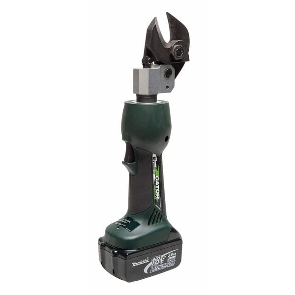 Cordless Cable Cutter, Voltage 18.0, Features Scissor Style Blades Make it Easy to Cut Short Tag Ends on Tap Cables in H-tap Connectors, LED Light Provides the Operator with the Battery Charge and Tool Maintenance Status, Cutting Head Rotates 350 Degrees , Includes (2) Batteries, (1) Battery Charger, Carrying Case